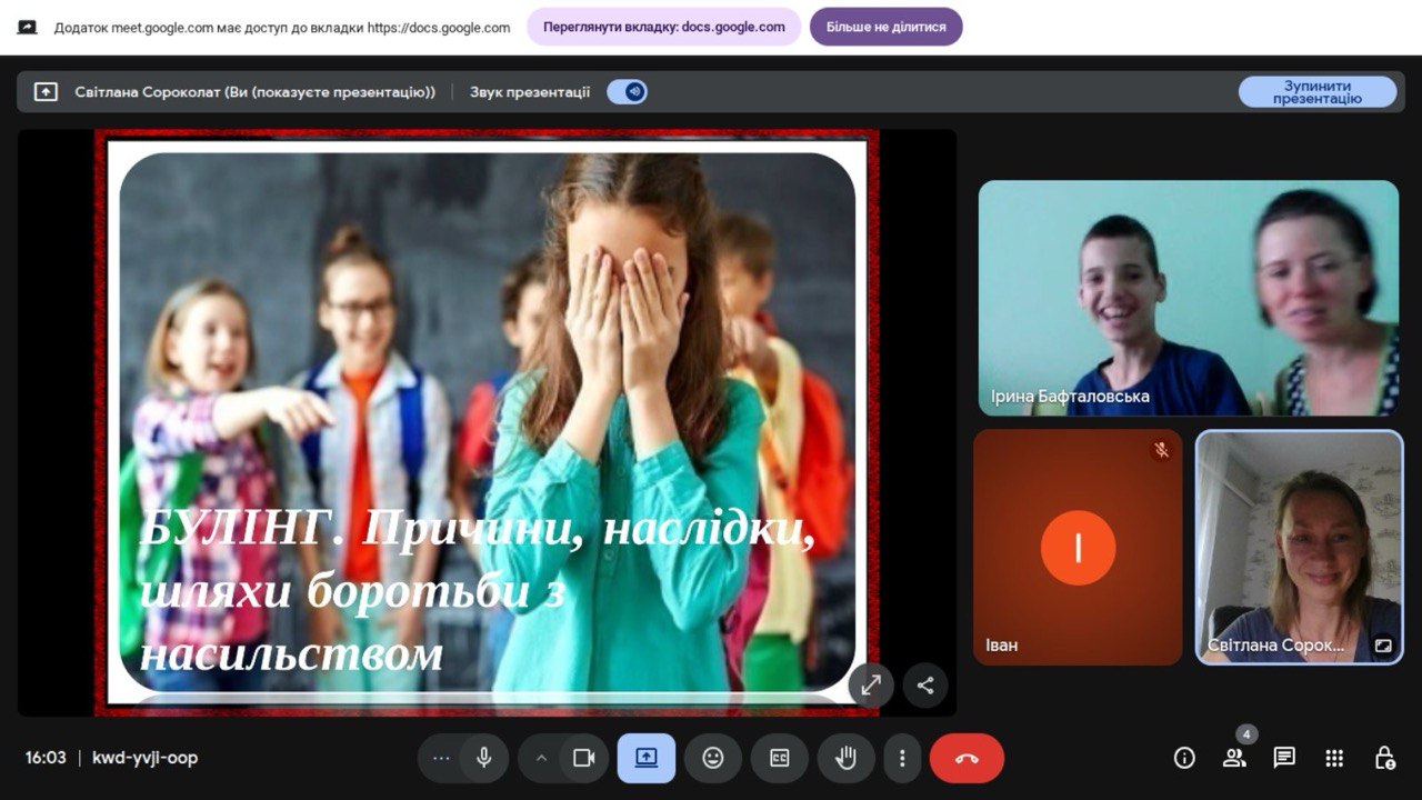познайомив здобувачів освіти з явищем онлайн-грумінгу, його ознаками і наслідками, а також допоміг усвідомити учням як можна вберегти себе від цього небезпечного виду булінгу. Під час заходів учасники освітнього процесу здійснювали аналіз власного емоційного стану та