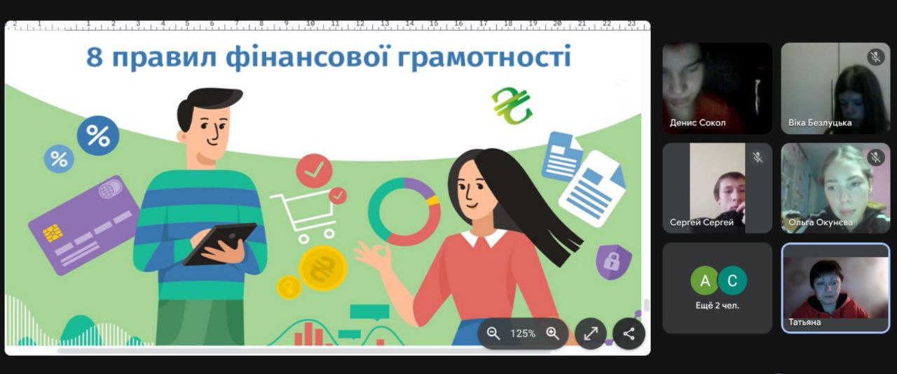 Щоб сформувати усвідомлене ставлення до власних фінансів учасники освітнього процесу долучилися до заходів Національного банку України «Заощадження – твоя суперсила». У межах відзначення тижня заощаджень 2025 були проведені заходи, які довели, що керувати грошима — це сучасно, креативно і зовсім не складно. Учні за допомогою презентації «Мій перший бюджет» засвоїли ключові принципи планування. Теоретичні знання одразу закріпили на практиці де вчилися складали свій власний бюджет. Здобувачі освіти пройшли тестування «Знаю все про заощадження» та взяли участь у конкурсі запитань «Заощадження без таємниць». Кожен день був наповнений корисною інформацією, яка може допомогти бути впевненішими у своєму майбутньому, зокрема, як планувати бюджет, цінувати гроші та відповідально ставитися до ресурсів. Учні отримали не просто знання, а— вміння керувати своїм фінансовим потоком. Адже фінансова грамотність — це валюта майбутнього.