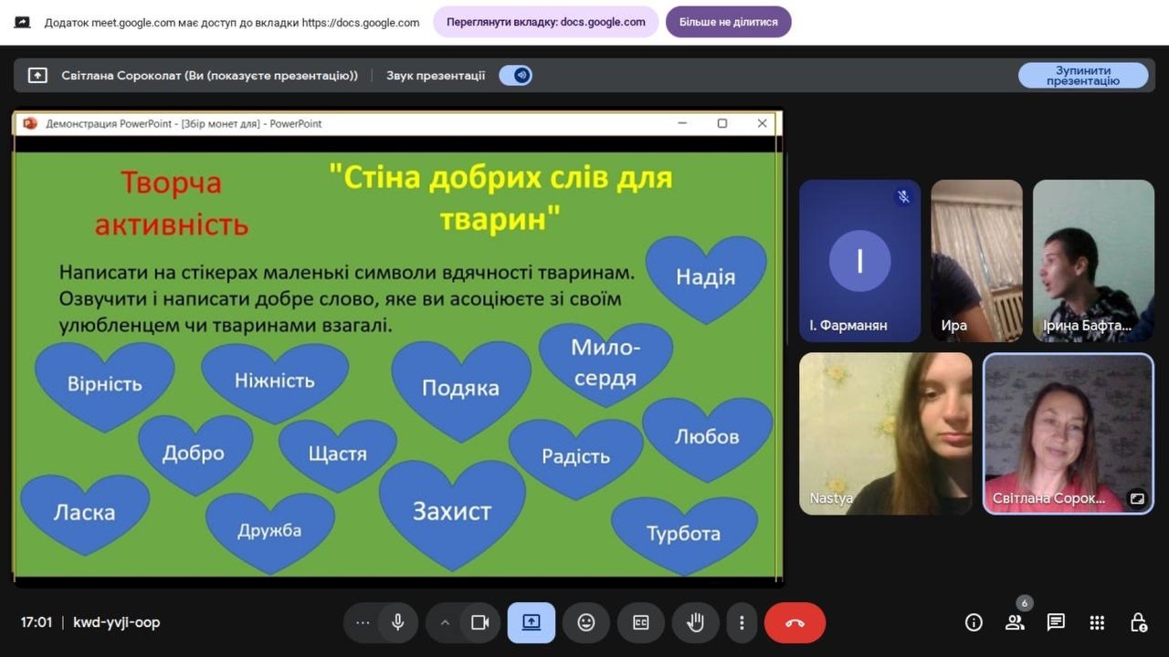 У межах челенджу «ДоброБінго: допомагаємо тваринам», здобувачі освіти 6,7 класів, в ході інтерактивної гри «Можна – не можна», дискутували про прояви людяності у ставленні до братів наших менших, розмірковували над тим, як кожен може допомогти тваринам у повсякденному житті.