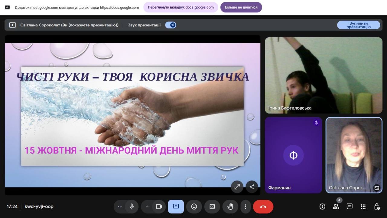 15 жовтня у всьому світі відзначають День миття рук. Здобувачі освіти пригадали, що це найпростіший і найефективніший спосіб запобігти поширенню інфекційних захворювань, таких як грип, ГРВІ та кишкові інфекції. На виховних годинах учні говорили про важливість