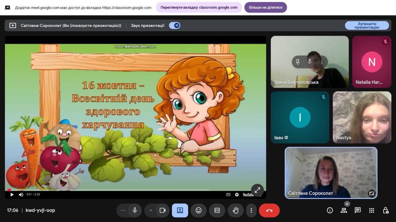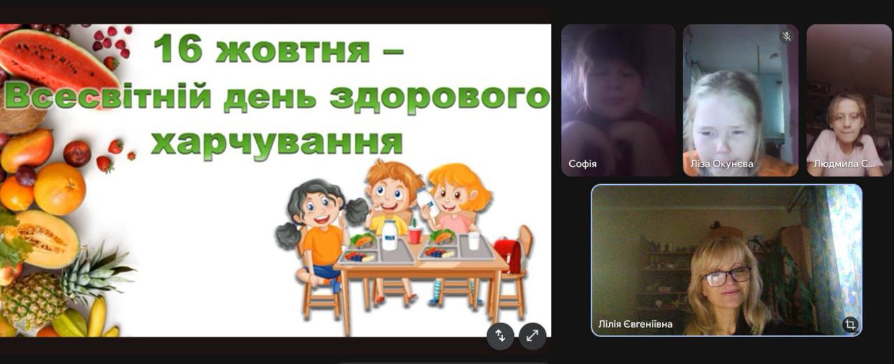 16 жовтня відзначається Всесвітній день здорового харчування, мета якого — привернути увагу до проблем харчування та пропагувати здорові харчові звички. Учні початкових класів в цей день вивчали вплив вітамінів на здоров'я, складали «здорову тарілку», аналізували українські народні страви, проходили цікаві лабіринти здоров'я. Здобувачі освіти 5-9 класів
