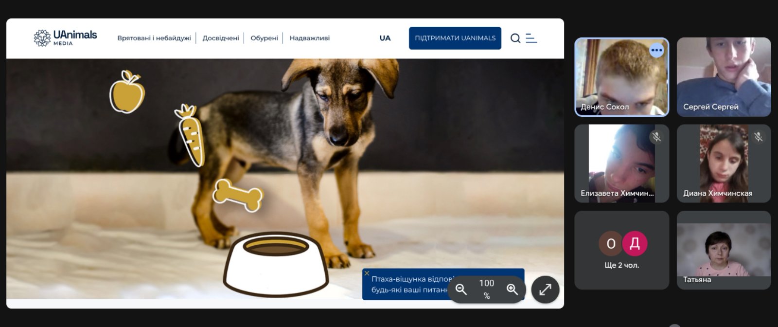1-4 класів переглянули мультфільм «Мої друзі – домашні улюбленці» після чого обговорювали чому важливо турбуватися про своїх маленьких друзів. В ході інтерактивної грі «Можна – не можна» здобувачі освіти 5-7 класів дискутували про прояви людяності у ставленні до братів наших менших, розмірковували над тим, як кожен може допомогти тваринам у повсякденному житті. Учні 8-9
