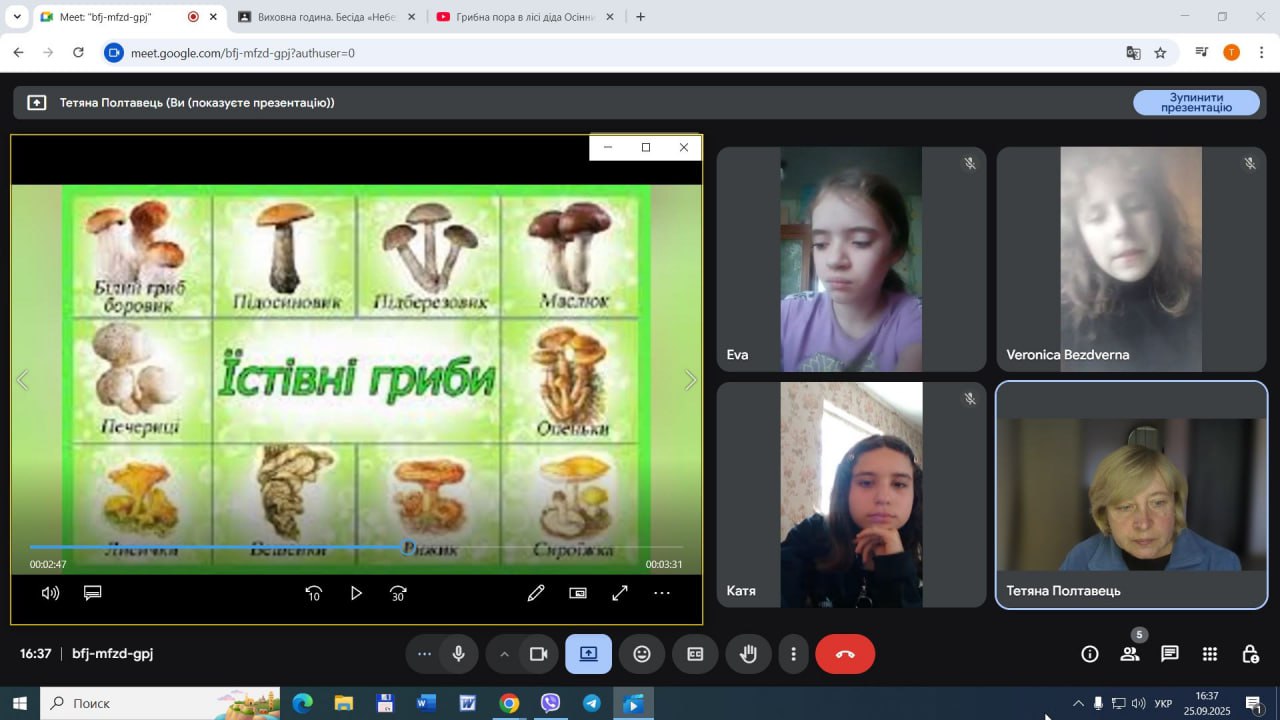 організм людини. Здобувачі освіти 5-9 класів пригадували як розрізняти отруйні та їстівні гриби за характерними ознаками та спільно виробили правила збирання та вживання їстівних грибів. Під час виховних годин учні активно долучались до вікторини, розгадували загадки,