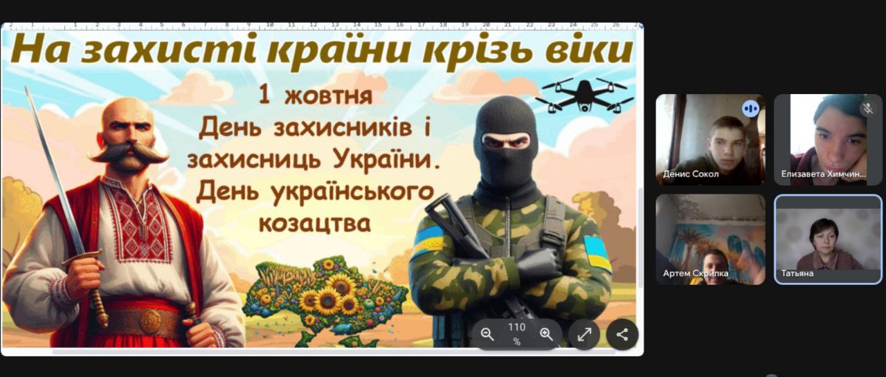 До Дня Покрови Пресвятої Богородиці, Дня захисників і захисниць України та Дня Українського козацтва у школі було проведено низку заходів. Здобувачі освіти переглядали відео презентації з яких дізналися про історію свята, особливості його святкування, про сміливих, безстрашних та вправних воїнів всіх поколінь, вшанували захисників. Свою