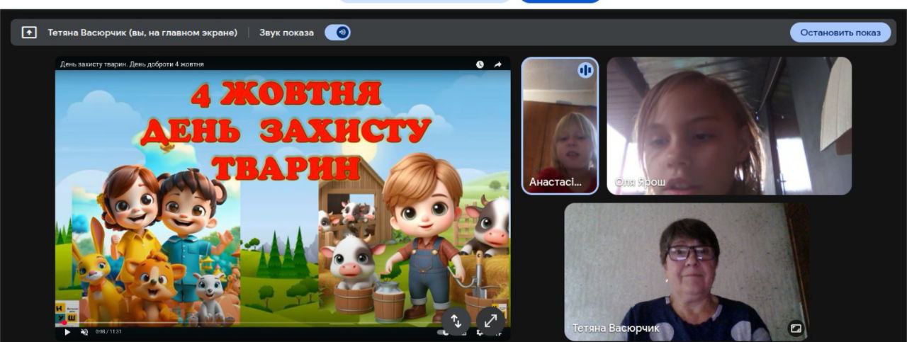 пограли в інтерактивну гру «Поява чотирилапого улюбленця». Учні з захопленням розповідали про своїх домашніх улюбленців, ділилися світлинами, цікавими історіями та обговорили, як люди можуть допомагати безпритульним тваринам, створили яскраві плакати та малюнки з гаслами про добро і турботу.