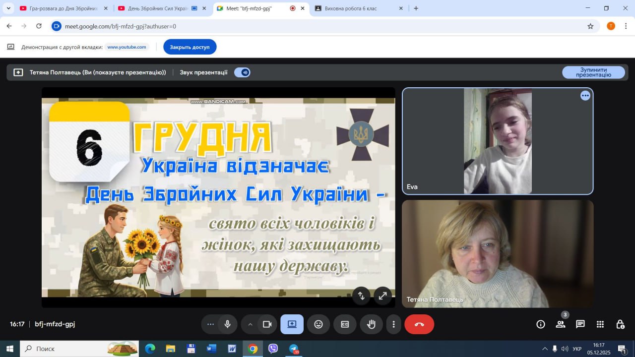 День Збройних Сил України — це свято на честь тих, хто захищає суверенітет і незалежність нашої держави. З нагоди відзначення Дня Збройних Сил України у школі були проведені вікторини, виховні години, години спілкування за темами: «Слава Україні! Слава ЗСУ!»; «За Україну, за її волю, за честь, за славу, за народ!»; «Вони незламні» під час яких учні дізналися про історію створення ЗСУ, їхню роль у захисті країни та внутрішніх місіях, переглядали тематичні відео та ділилися своїми