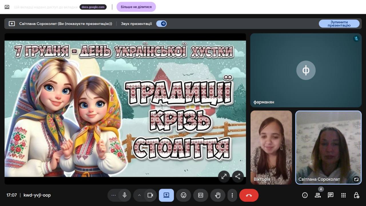 До Дня української хустки вихователі провели цікаві виховні заняття «Українська хустка наш скарб». В ході яких були проведені різні форми роботи, які значно розширили знання учнів про хустину, як давній символ української жіночності, познайомили з традиціями носіння української хустки, дізнавалися про їхнє символічне значення. Здобувачі освіти малювали