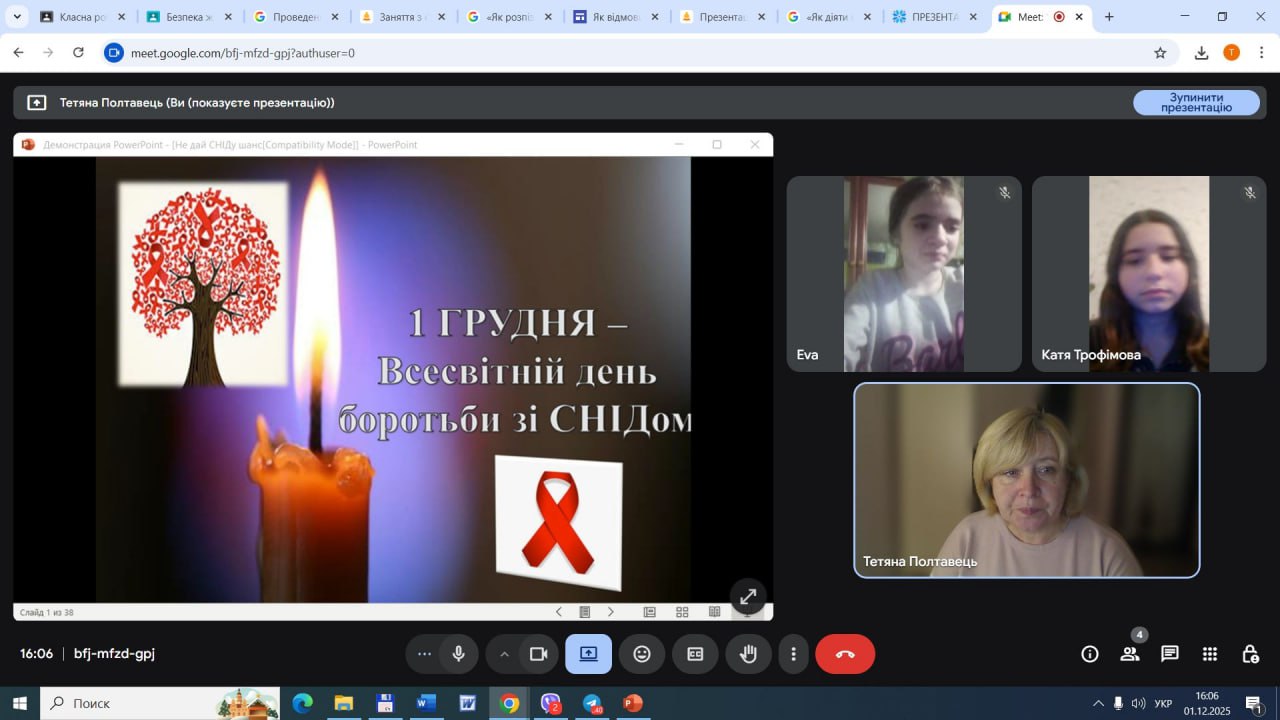 1 грудня в школі були проведені онлайн-заходи з нагоди відзначення Всесвітнього дня боротьби зі СНІДом та толерантного ставлення до ВІЛ-позитивних людей в рамках Всеукраїнської акції «16 днів проти насильства». Педагоги закладу провели низку заходів на підвищення уваги учасників освітнього процесу до власного здоров’я та