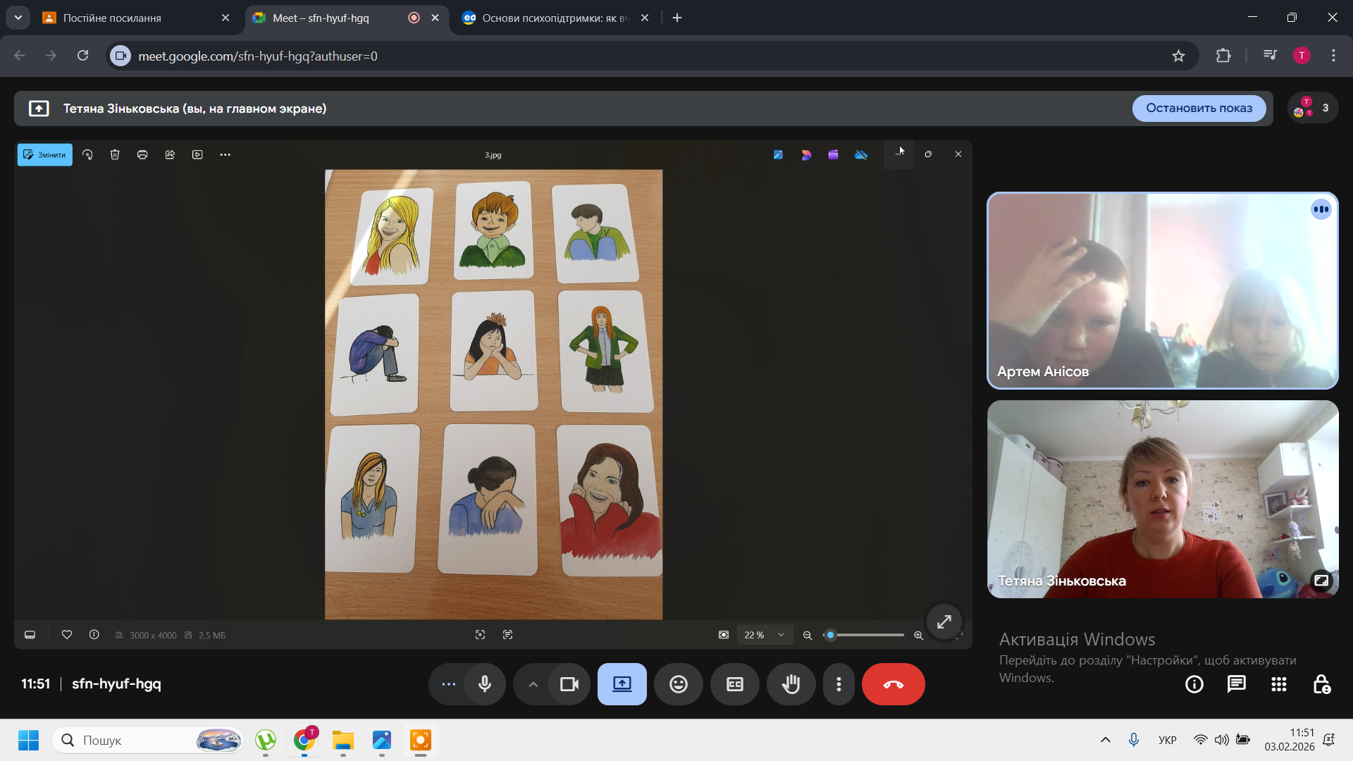 Нелегкі часи продовжуються…. «Голосні» ночі та дні, відсутність світла, втрати… Однак – ТРЕБА ЖИТИ! Вчителям вчити, діткам навчатися, батькам допомагати….Всім нам треба триматися. Психопідтримка має за мету покращити психоемоційний стан учасників освітнього процесу, заспокоїти, підтримати, сформувати ресурси та стресостійкість. Різноманітні вправи з розвитку емоційного інтелекту (назви свій настрій, обери та опиши метафорично-асоціативну картку та інші) дозволяють краще зрозуміти свій психологічний стан, поділитися ним, отримати